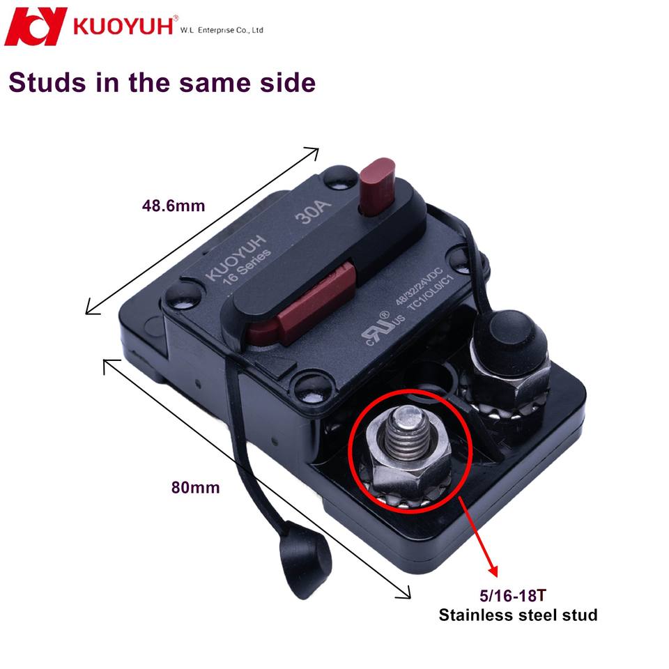 High Amp Heavy Duty Industrial Household Circuit Breakers Plastic High Voltage Surface Mount Manual Reset Studs Same Side