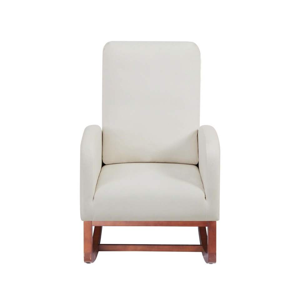 High Back Beige Flannelette Wood Indoor Rocking Chair with Brown Legs Living Room Chair with Side Bag