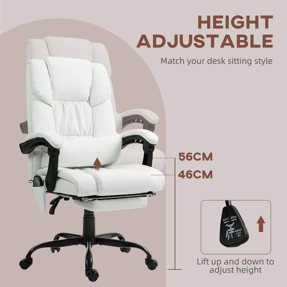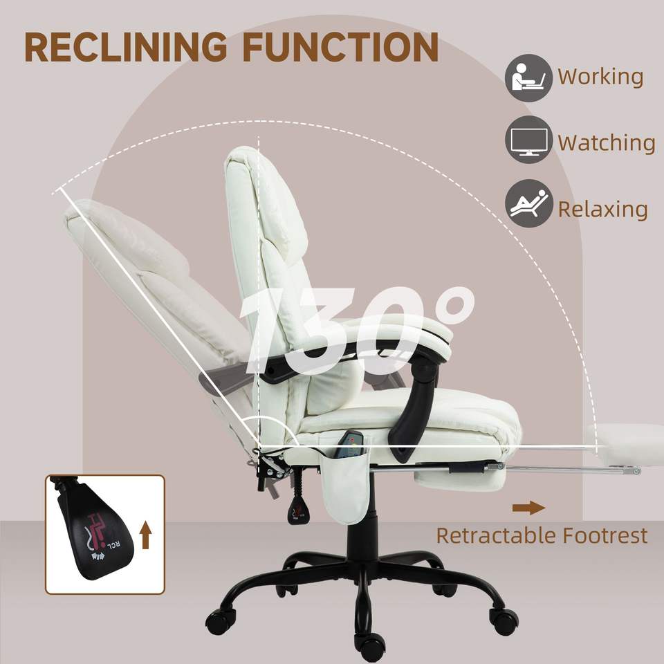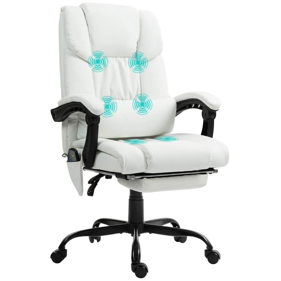 High Back Reclining Computer Chair with 6 Vibrating Points White Office Chair with Footrest Remote Perfect Massage Experience