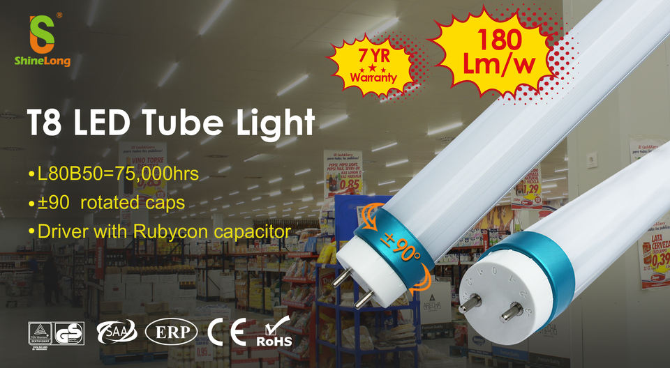 High Brightness 200lm/w 7 Years Warranty 120cm 4ft 18w T8 Led Tube Light Replace Fluorescent Lamps Tubes Lights Milky PC Cover