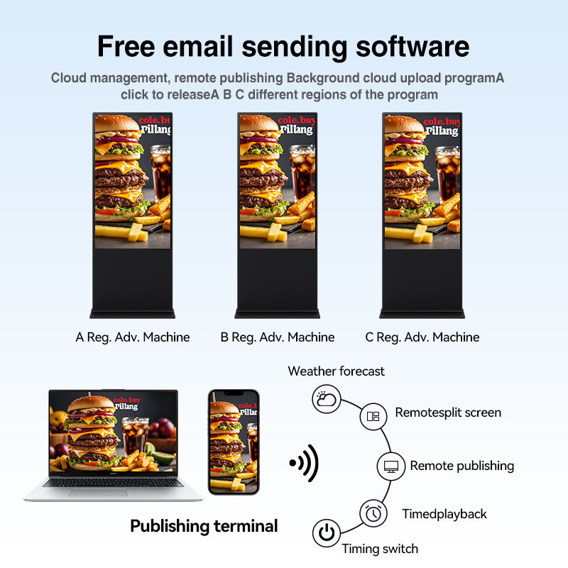 High Brightness IPS Panel 4K Floor Standing LCD Digital Signage AD Player with Cloud-Based CMS for Indoor Cinema Use