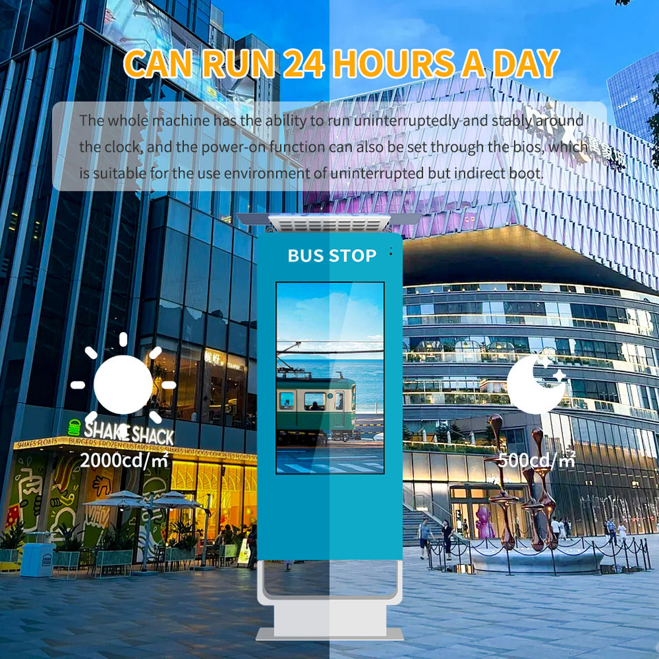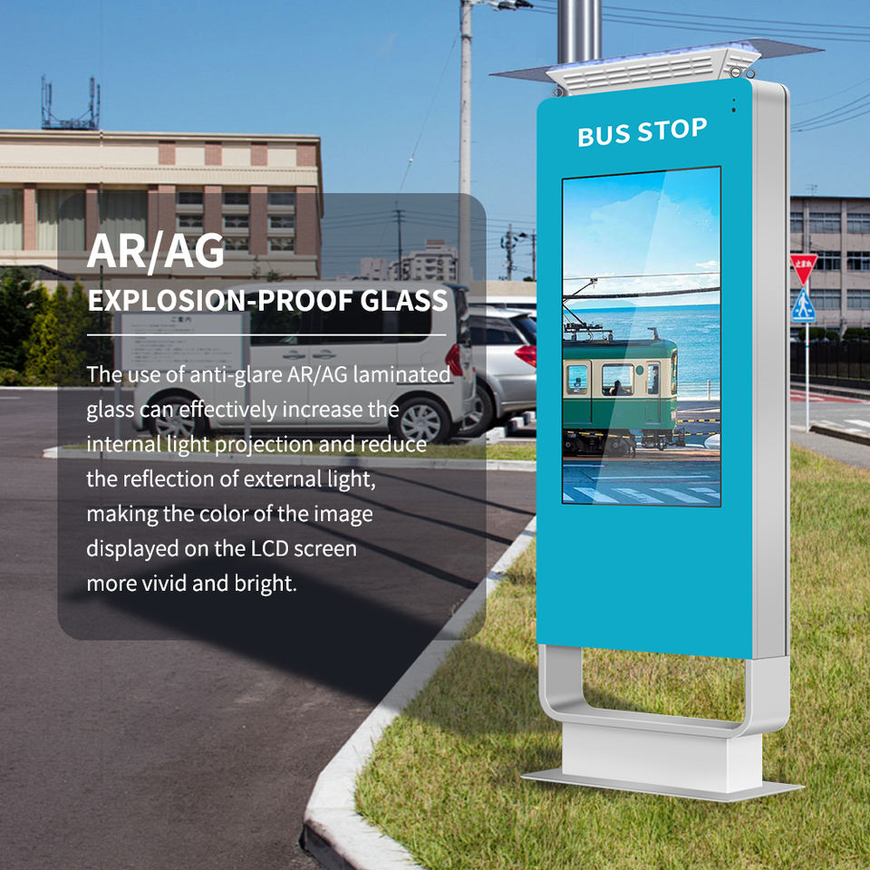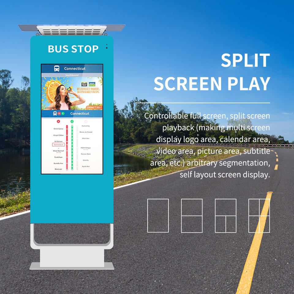 High Brightness Outdoor Totem Billboard Floor Standing Digital Signage Kiosk Displays Advertising Light Boxes with Bus stop