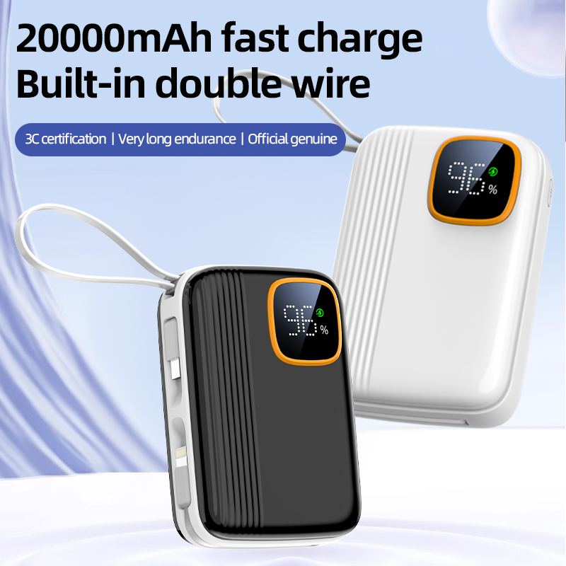High-Capacity 20000mAh Li-Polymer PVC Plastic Portable Bank LED Display 25W Type-C 2-in-1 Quick Charger for Fast-Charging