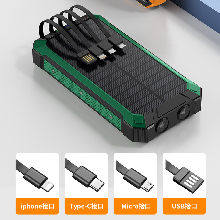 High Capacity 20000mAh Outdoor Solar Power Bank with Wireless Charging Fill Light Type-C/USB/DC Outputs 10W Fast Charging