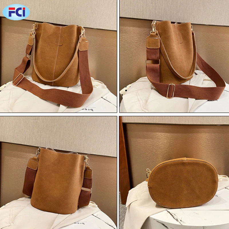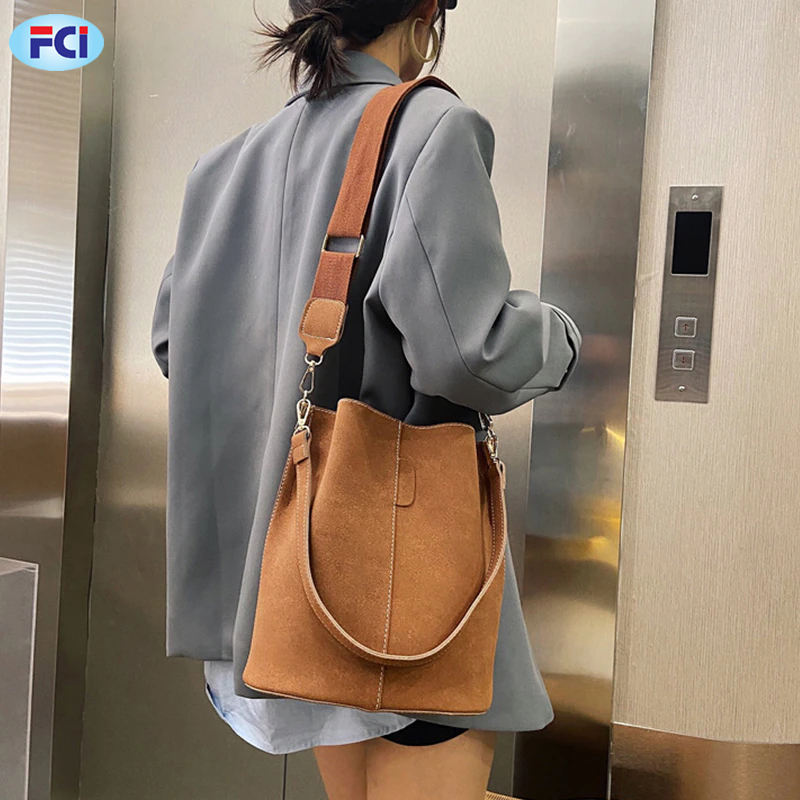 High Capacity Bucket Bags Nubuck Leather Shoulder Bag for Women Designer Brand Tote Hand Bag