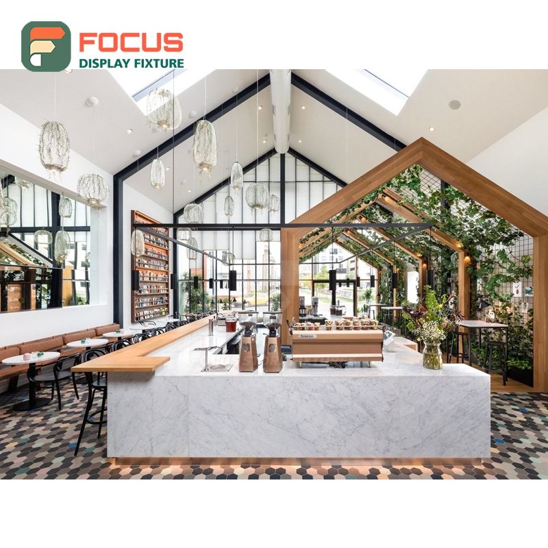 High Capacity Cafe Service Counter Tempered Glass Panel Barista Service Zone Commercial Cafe Counter