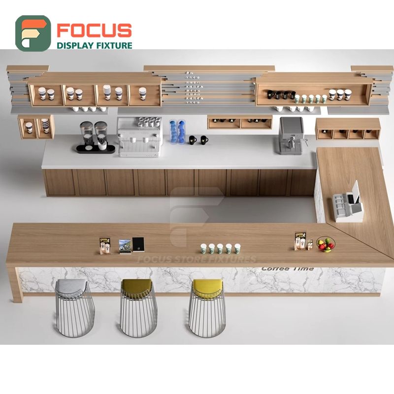 High Capacity Coffee Merchandise Display Rack Oak Grain Finish Coffee Bean Display Area Coffee Bar Display Rack