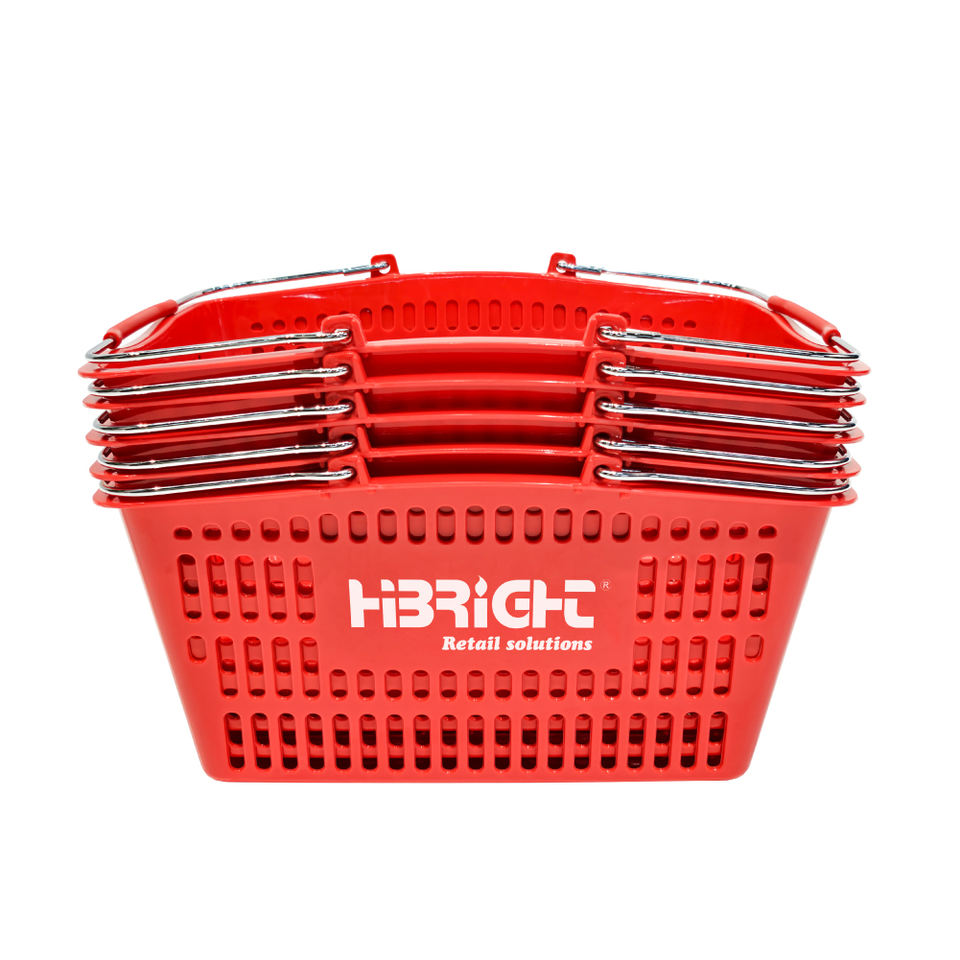 High Capacity Comfortable Handle Customized Logo Stackable Design Plastic Metal Shopping Basket
