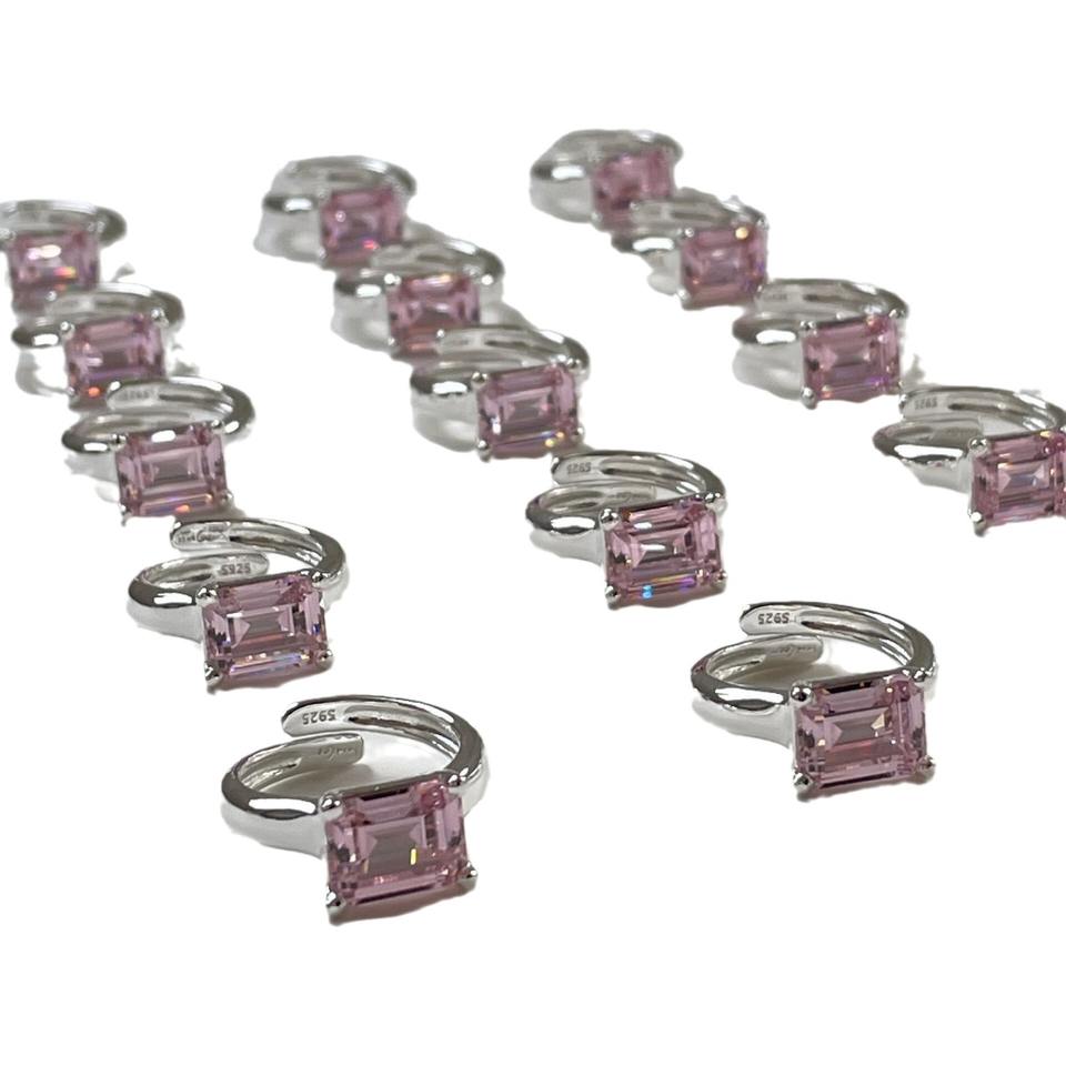 High Carbon Diamond S925 Pure Silver Ring Light Jewelry Pink Ice Flower Cut Simple High-End Sugar Cube Inlay Elegant Block Ring