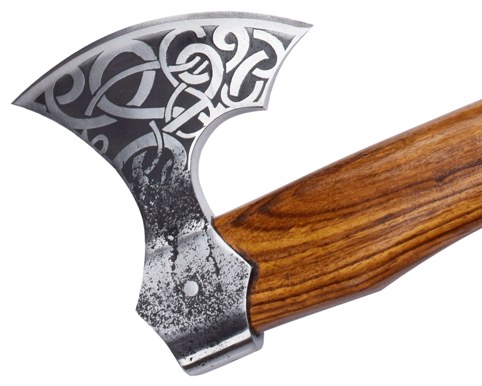 High Carbon Medieval Tactical Viking Axe with Rose Wood Handle HRC52-58 Hardness 5-inch Cutting Edge for Camping