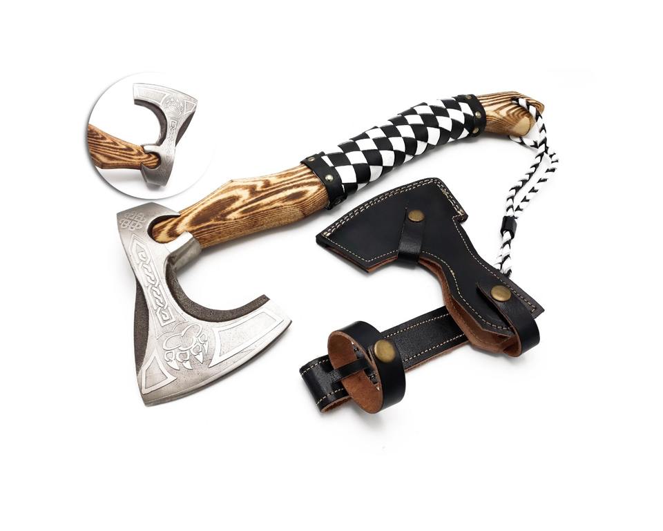 High Carbon Steel Embossed Head Axe DIY Grade Hatchet With Wood Handle for Camping Outdoor Cutting Applications