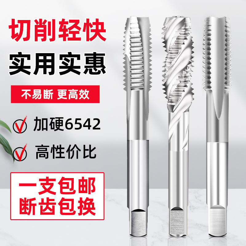 High-Cobalt Stainless Steel Spiral Tap 6542 Machine Tap Titanium-Plated Pointed Tip Straight Flute for Special Drilling Holes