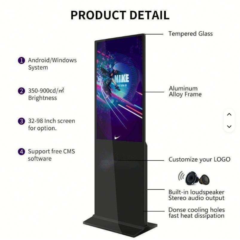High-Definition 85inch Indoor Floor-Standing Vertical Advertising Machine Touch LCD Display 4K Ultra HD LED Light Remote