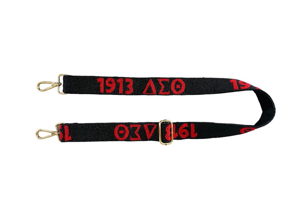 High Demand Adjustable Length Beaded Bag Strap Optimal Comfort Hammered Game Day Design Black Red Letters Beaded Belts