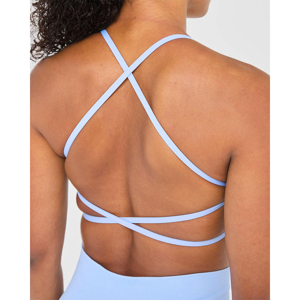 High Demand Baby Blue Crossback Sports Bra Flattering V Neckline Strappy Back New & High Impact Adult Women's Fitness Sports Bra