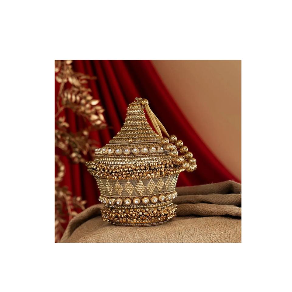 High-Demand Luxury Kundan Bag With Rhinestone Work Brass Metal Purse Pattern for Weddings and Parties Available for Export