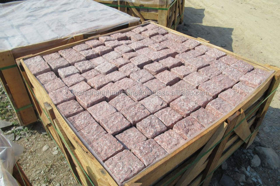 High-Demand Red Granite Cube Stones Natural Finish Pavers for Courtyards, Roads & Outdoor Flooring, Building Facades