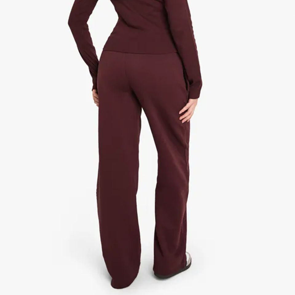 High Demand Women's Chocolate Brown Sweatpants Terry Fleece Soft Touch Fabric Straight Leg Joggers with Wide Leg Pants Style