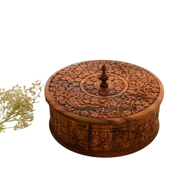 High Demand Eco-Friendly Wooden Roti Box with Lid Hand-Carved Chapati Storage Container for Home Restaurant Use Freshness Style