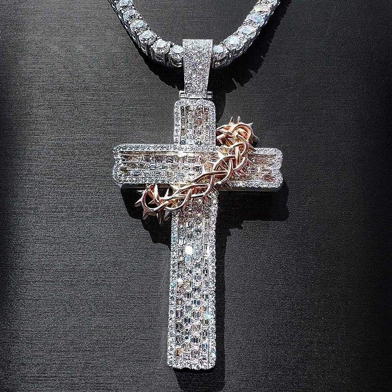 High Demanded Custom Hip Hop Cross Pendant Watch Gold Silver Leather Strap Waterproof 41mm Men's Women Sexy Diamond Quartz