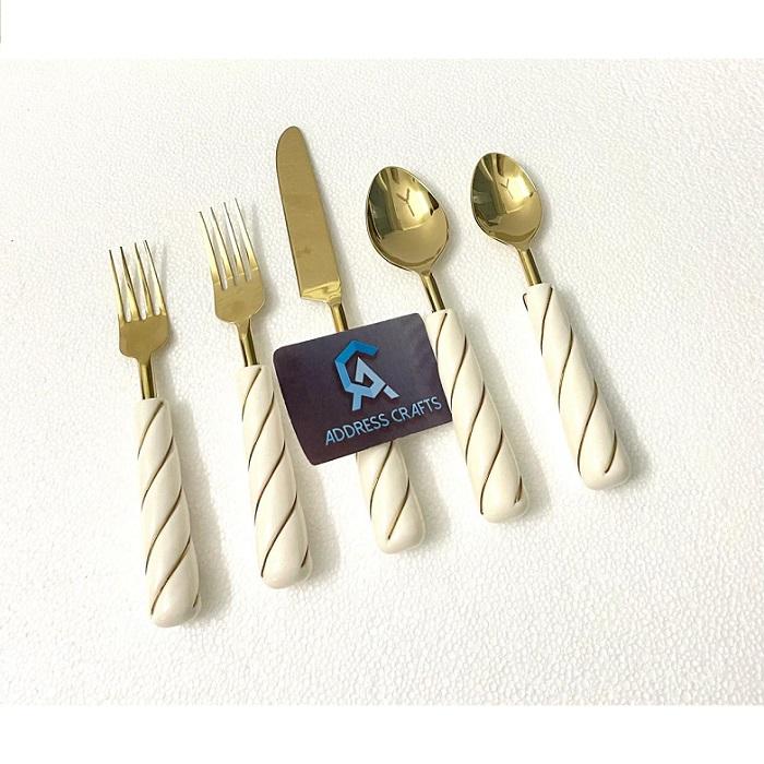High Demanded PVD Gold Plated Flatware Set With Fancy Resin Handle 18/8 Stainless Steel 5 Pcs Cutlery Set Tabletop Gold Cutlery
