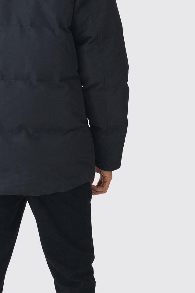 High Demanding Hooded Puffer With Removeable Faux Fur Trim In Black Windproof Warm Winter Bubble Men's Jackets Side Pockets