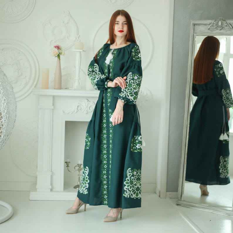Sensuous Ukraine Fashion High Demanding Gorgeous Blue White Embroidered Floor-Length Ukrainian Dress Tassel Tie Relaxing Costume
