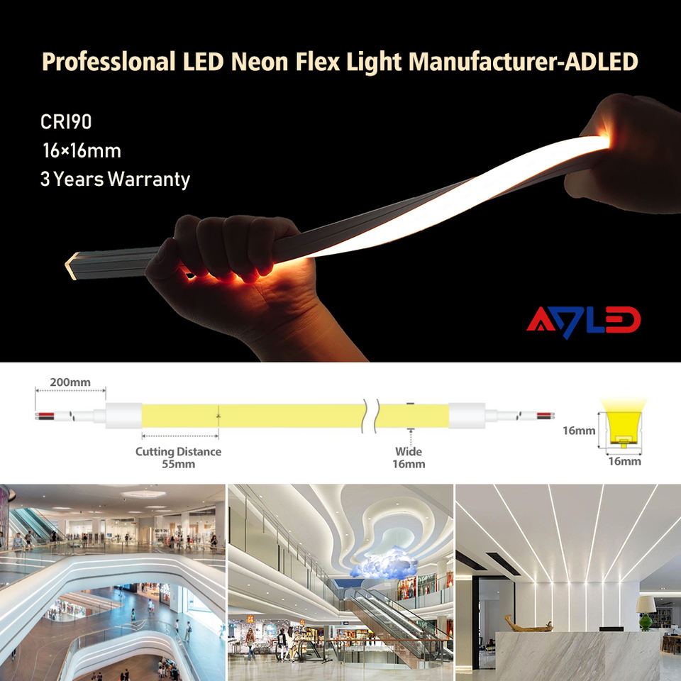 High Density 126leds/m 16*16mm Neon LED Strip Light Flexible Silicone Soft Lamp Tube CRI90 Architectural Contour Outline Light