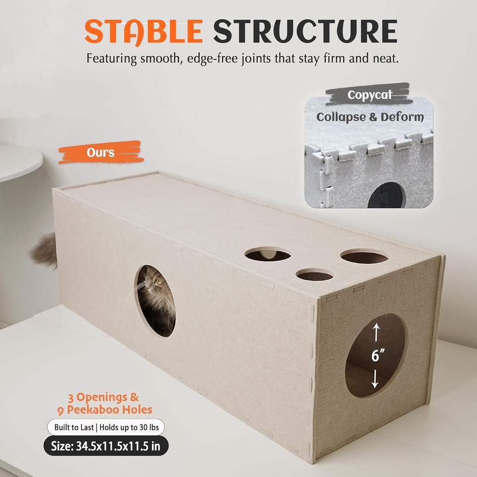 High Density Soundproof Cat Cave, Washable Acoustic Felt Cat Bed Customizable for Apartment & Pet Grooming Salon