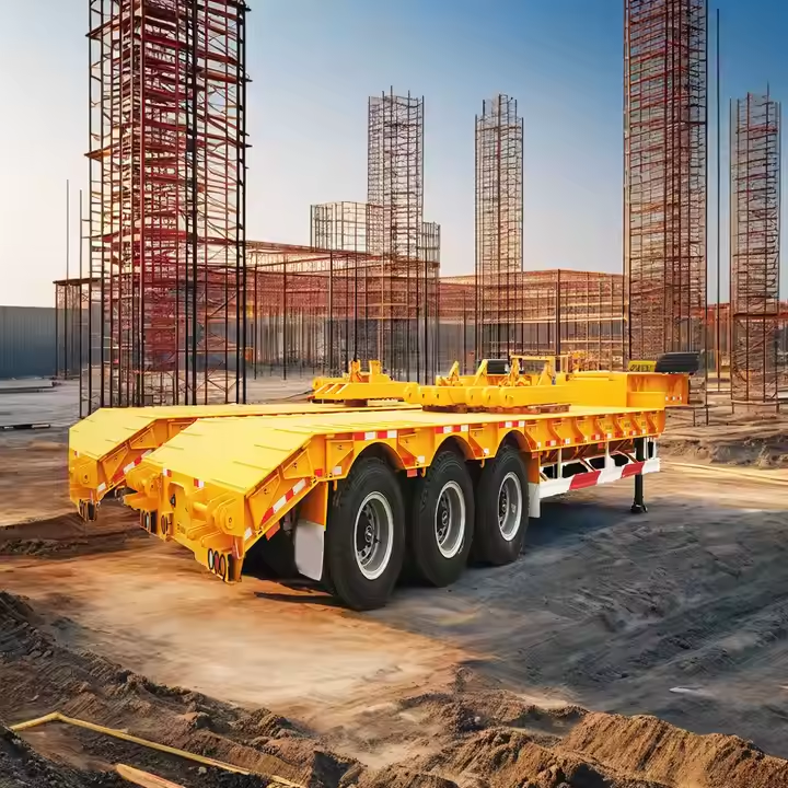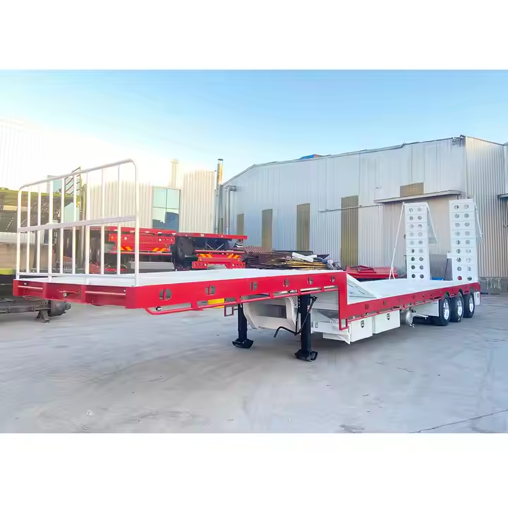 High-Duty Heavy Machine Transport Lowboy Lowbed Trailer Commercial Truck Semi Trailer with Hydraulic Ladder
