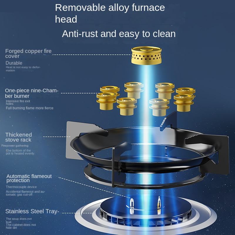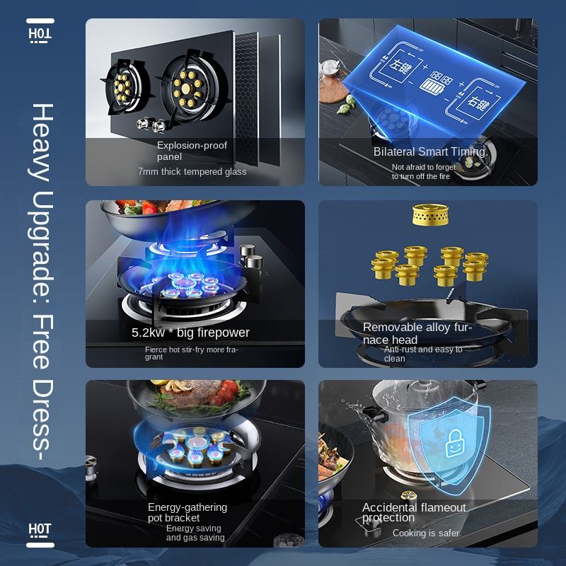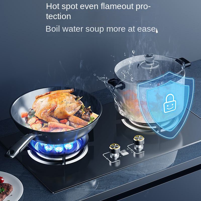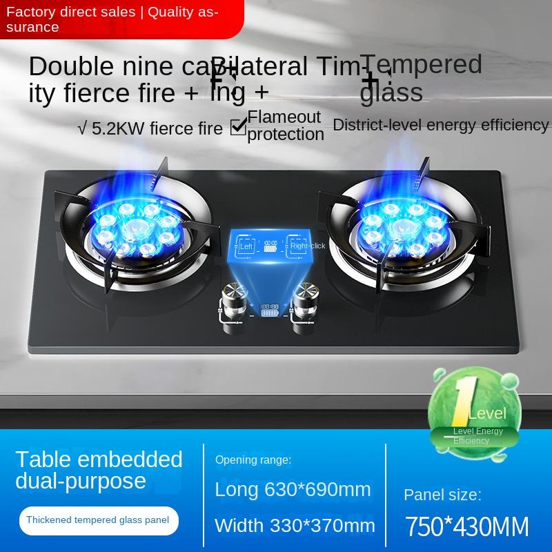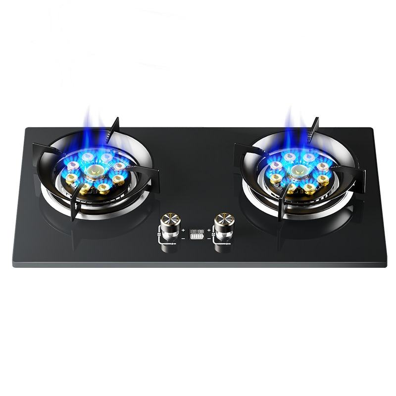 High-Efficiency 2-Burner Flip Glass Gas Hob Cooktop Commercial/ Home Kitchen Use Easy Built-In/Table Installation USB/Battery RV