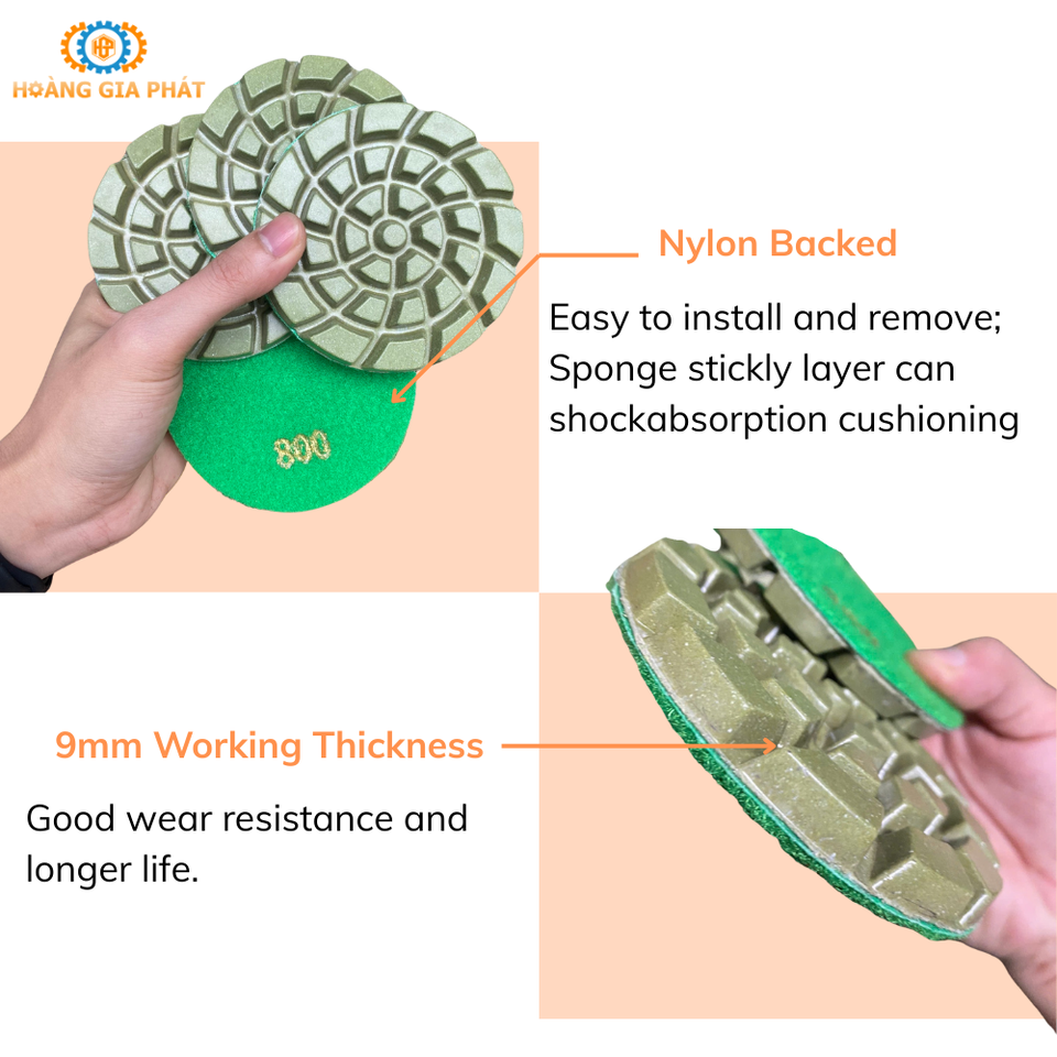 High Efficiency 9mm Diamond Polishing Pad OEM Logo Vietnam Made Durable Disc for Concrete and Stone Floor with Factory Price