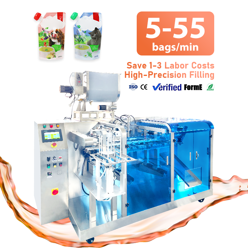 High Efficiency Automatic 250ml 500ml Pet Wet Food Liquid Packaging Machines Pre-made Bag Filling Sealing Machines