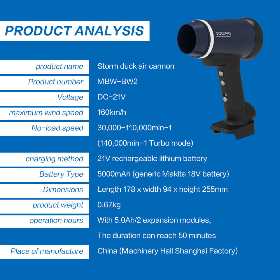 Lithium battery, Four wind speeds, Turbo mode, 3 types of air nozzlesgrade