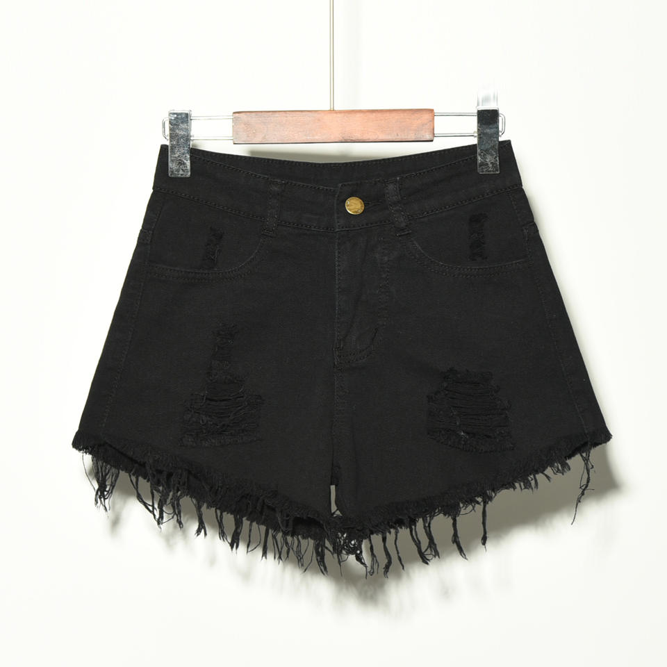 High Elastic High Quality Summer A-Line Women's High-Waisted Denim Shorts Plus Size Baggy Thin Curly Edge Wide Leg Straight Sexy