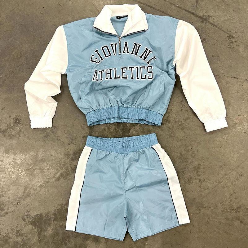 High Embroidered Patch Logo Windbreaker Long Sleeve Button up Shirt and Shorts Nylon Uniforms Athletic Short Sets for Men