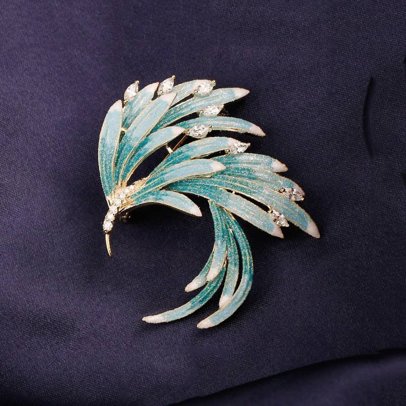 High-End 1PC Chinese-Style Vintage Enamel Brooch Gradient Diamond Inlay Elegant Phoenix Feather Corsage Pin for Suit Sweater