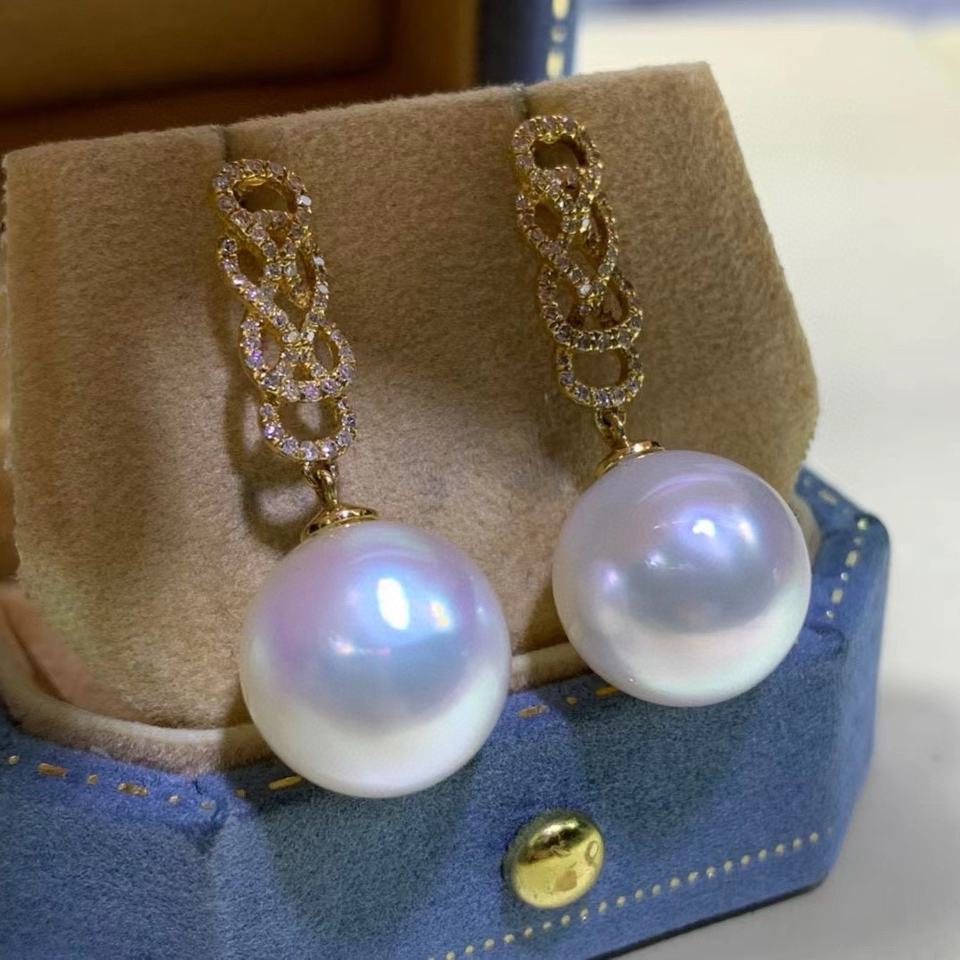 High-End 925 Sterling Silver Dangle Earrings Comparable to Australian 11-12mm White Natural Pearls