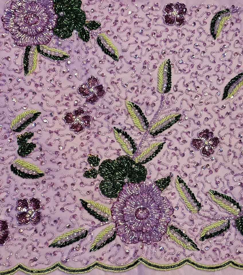 High-End Beaded Fabric Featuring Dense Floral Designs Crystal Sequins and Hand-Embroidery Ideal for Runway Couture From India