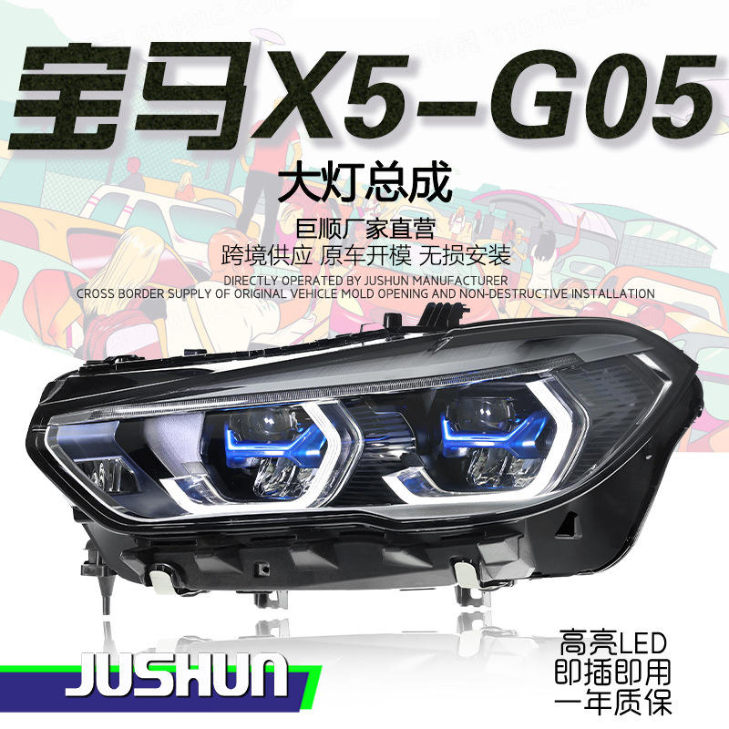 High-End Blue Frame LED Daytime Running Light Laser for 19-22 for BMW X5 Front Headlamp Assembly G05 Modified for Automobile Use