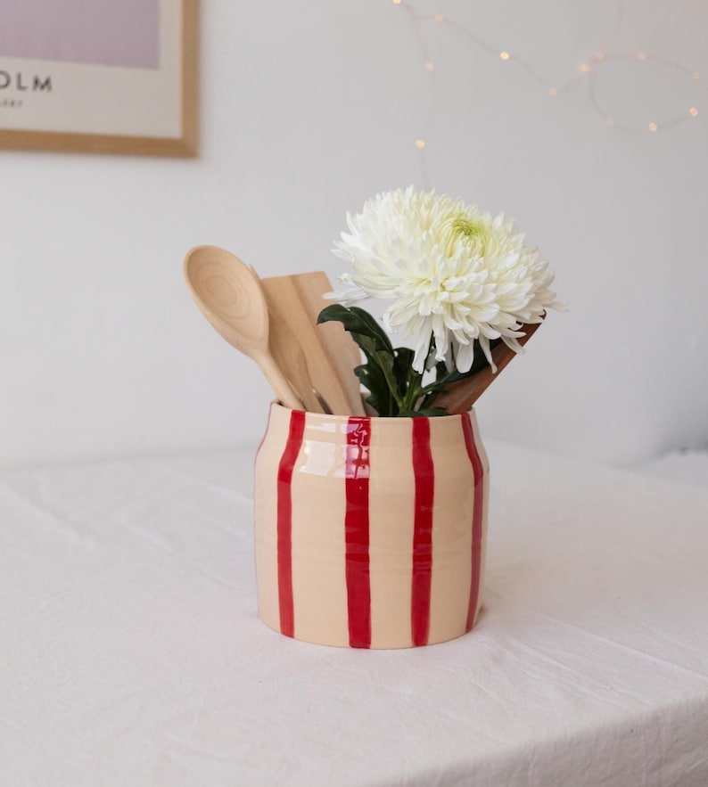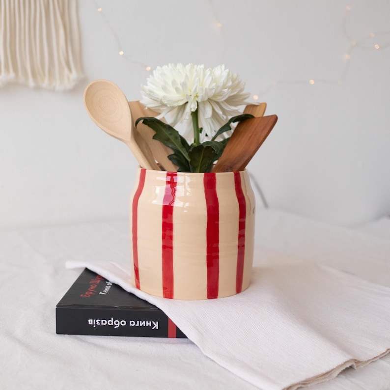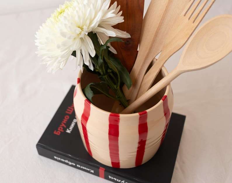 High-End Ceramic Utensil Holder for Kitchen Counter | Large Capacity Cooking Tool Organizer | Spoon Storage Jar