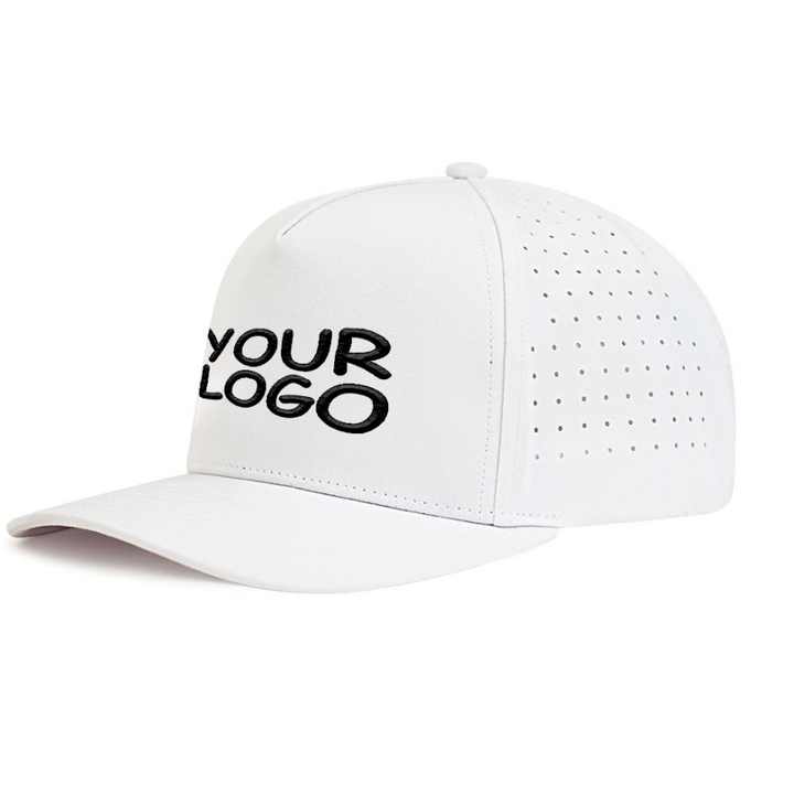 High End Custom 5 Panels Embroidered logo Perforated Laser Cut Hole Drilled Baseball Cap Waterproof Sports Cap Trucker Hat