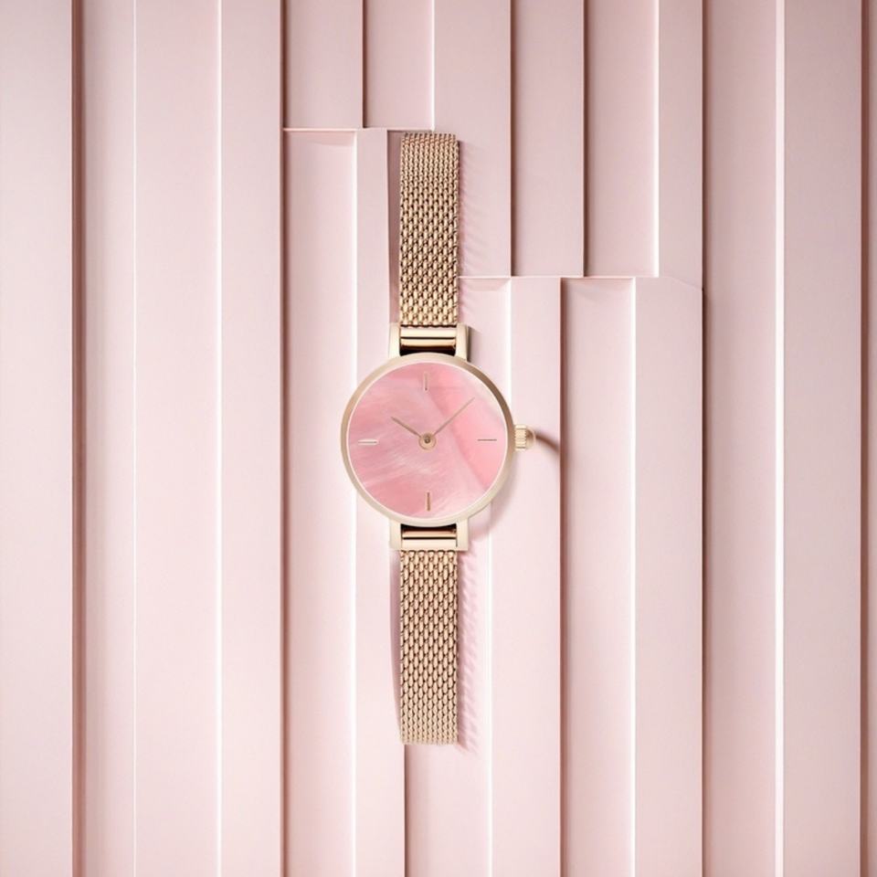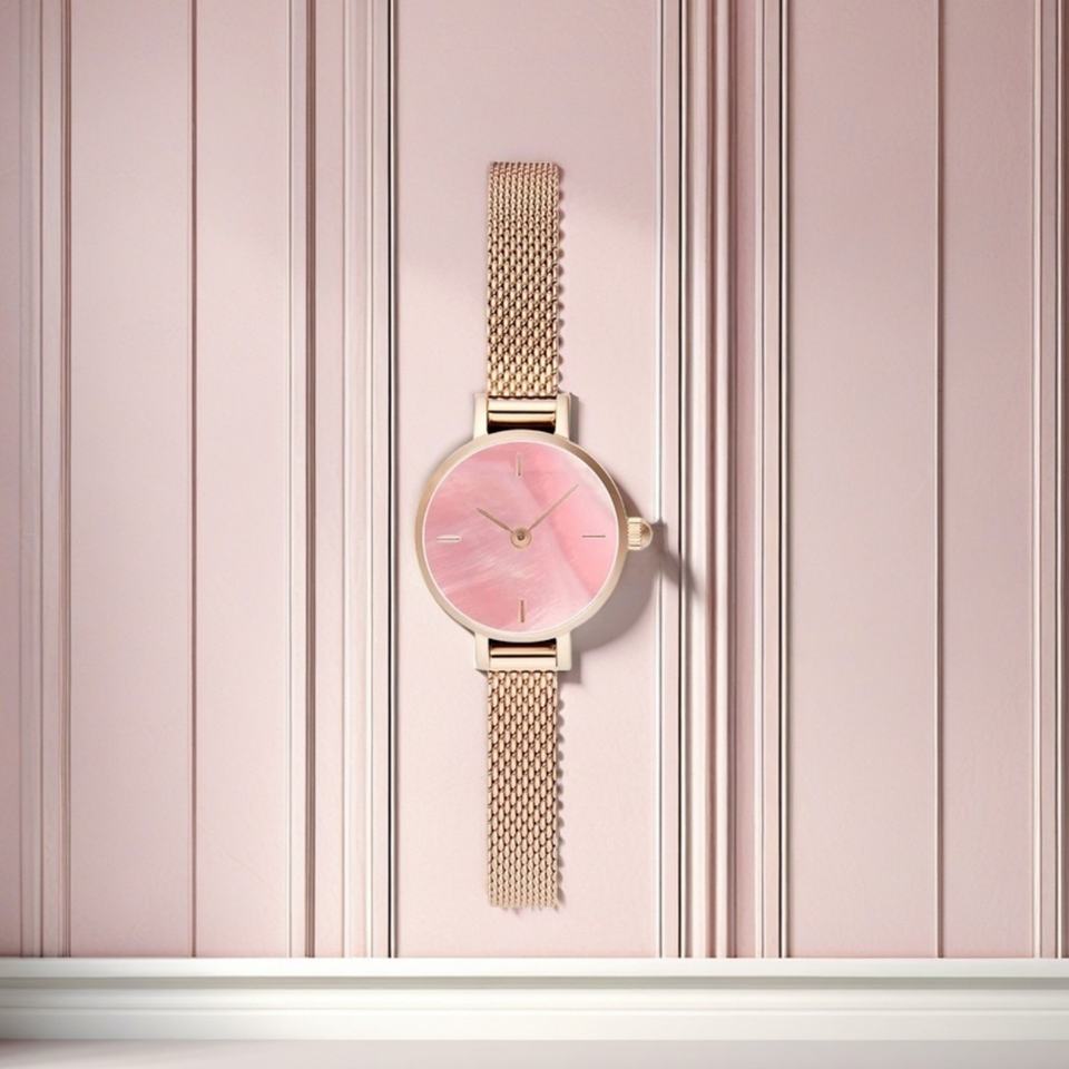 High-End Custom Pink Women's Watch Private Label Japan Movement Business Fashion Style Crystal Manufactured Elite Watchmakers