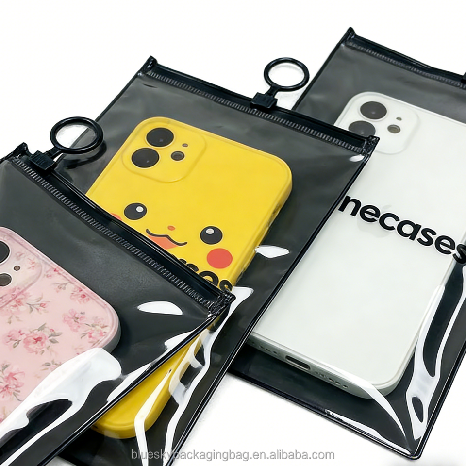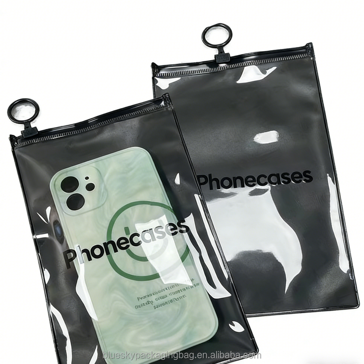 High End Custom Recyclable PVC Transparent Plastic Zipper Bags for Hair Bundles Golf Clothes Phone Cases Silk Screen Printing