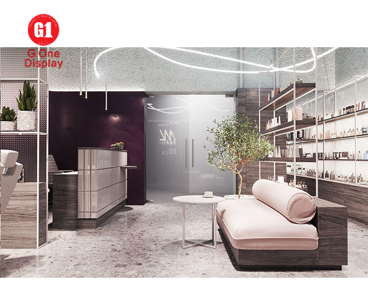 High-End Customized Eco-Friendly Waterproof Duty Cosmetics Display Counter Cosmetics Store Interior Design for Makeup Fitting