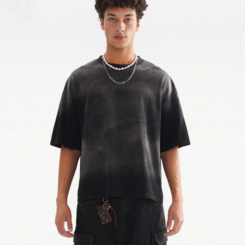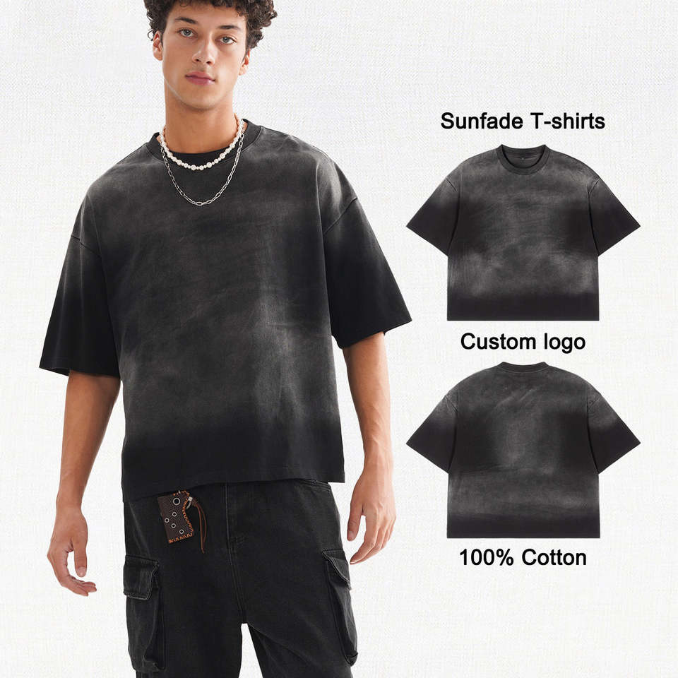 High End Customized Shoulder Drop Oversized Retro Heavyweight Cotton T-shirt, Acid Washed Sun Faded T-shirt, Unisex
