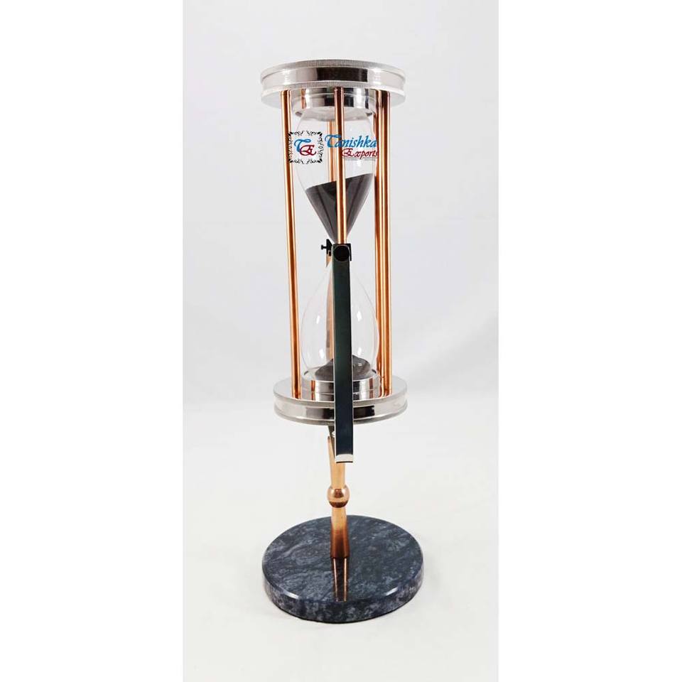 High-End Decorative Hourglass Sand Timer with Marble Base and Copper Rods Modern Design Glass Sand Clock for Home and Office