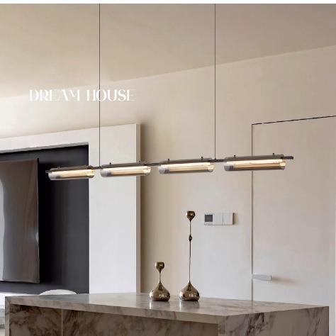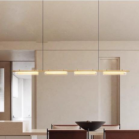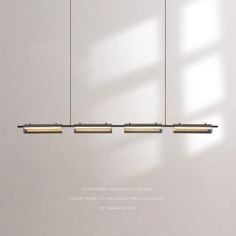 High-End Designer Single-Line French Italian Luxury Dining Table Lamp All-Copper Long Strip Chandelier for Restaurants & Homes