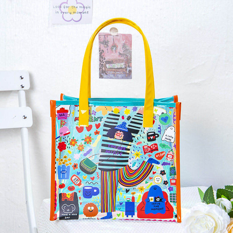 High End Durable Women PVC Shoulder Handbag Large Capacity PVC Travel Beach Bag Iridescent Yoga Bag Portable Tote Gift Bag