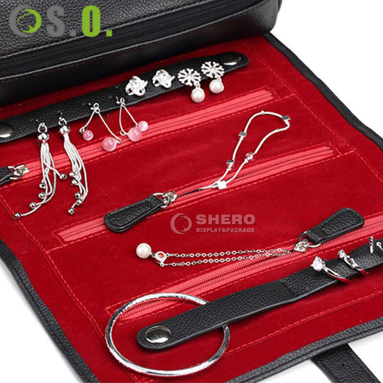 High-End Earring Necklace Bracelet Jewellery Organizer Foldable Pu Leather Travel Jewelry Roll Bag